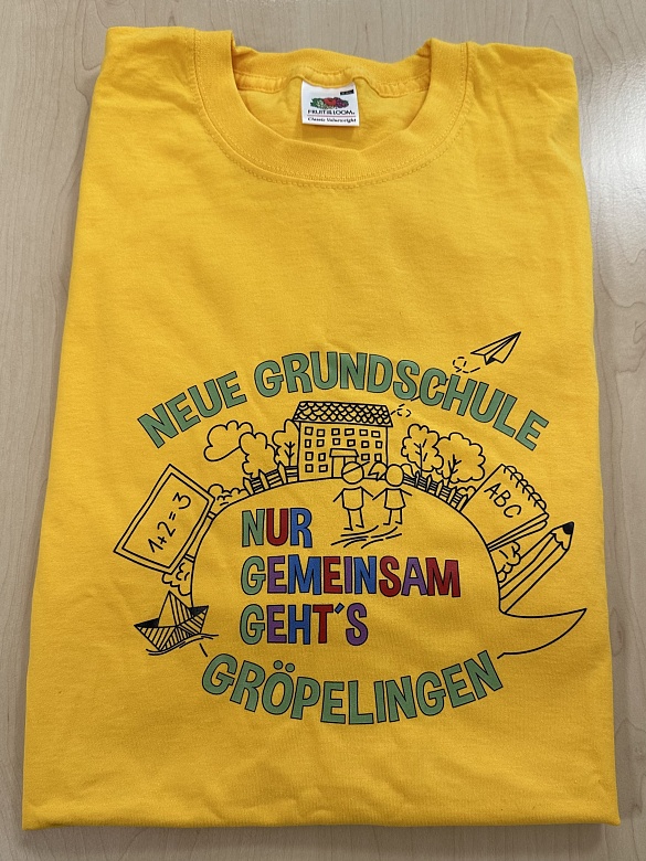Die "Neue Grundschule Gröpelingen" bietet ihren Schülerinnen und Schülern die Möglichkeit Schulkleidung zu kaufen. Wir haben T-Shirts für 15€ und Kapuzenpullover für 30€ im Angebot. Wir wollen unseren Schülerinnen und Schülern einmal im Jahr die Möglichkeit bieten diese zu bestellen. Die Schulkleidung ist gelb (Sunflower) und tragen alle unser Schullogo. Wir freuen uns, wenn viele Kinder unsere Schulkleidung tragen, um so auf Ausflügen und Festen unsere Zusammengehörigkeit zu zeigen.